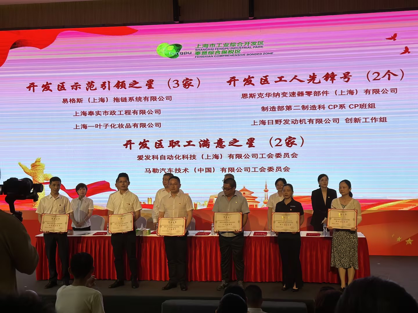 2023年7月1日上海市工業(yè)綜合開發(fā)區(qū)“踐行二十大 建功勇爭先”慶祝中國共產黨成立102周年表彰會順利舉行。愛發(fā)科自動化科技(上海)有限公司工會委員會在表彰會上榮獲2022年度“上海市綜合開發(fā)區(qū)職工滿